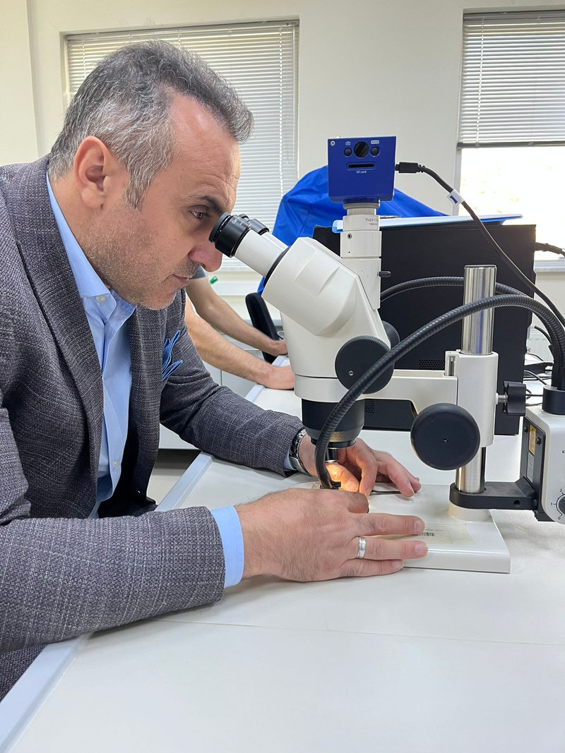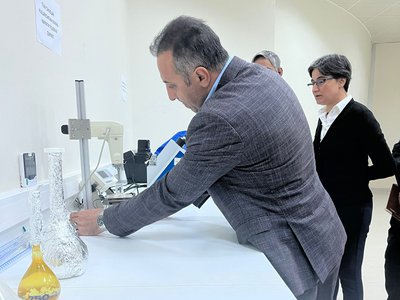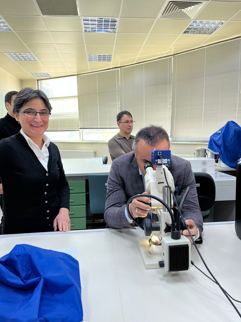 Gümüşhane Üniversitesi Rektörü Prof. Dr. Oktay YILDIZ, Merkez Araştırma Laboratuvarı Uygulama ve Araştırma Merkezi’ni ziyaret ederek GÜ-MERLAB Müdürü Prof. Dr. Duygu ÖZDEŞ, akademik ve idari personel ile birlikte laboratuvarlarda incelemelerde bulundu. GÜ-MERLAB Müdürü Prof. Dr. Duygu ÖZDEŞ'ten GÜ-MERLAB'ın mevcut durumu, altyapısı ve sürdürülen projelerle ilgili bilgi aldı.